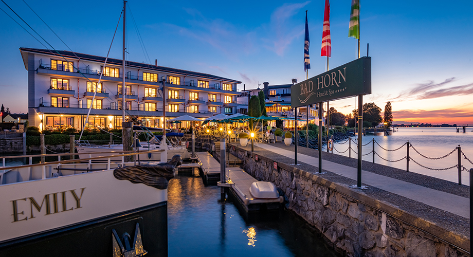 Fahren Sie mit dem Lexus LC Cabrio in das Hotel Bad Horn am Bodensee.